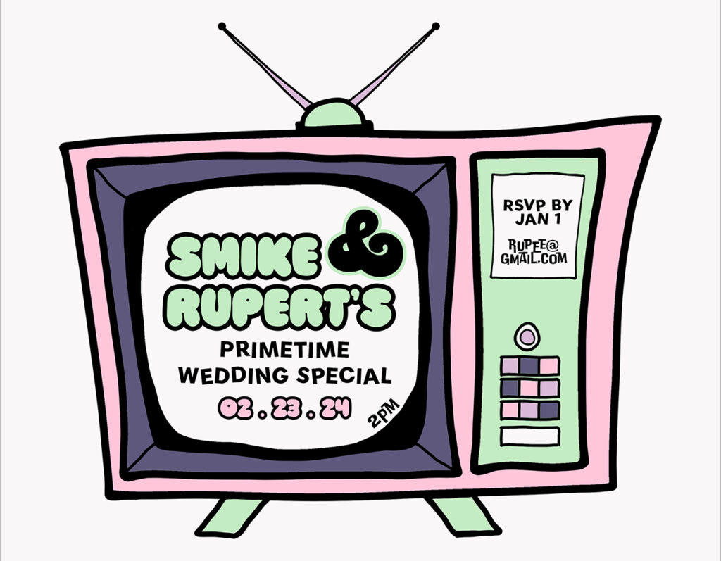 I designed this wedding invitation for a school project using Adobe Illustrator and Photoshop. For a unique twist, I illustrated a vintage TV and framed the wedding as if it were a special episode in the couple’s life story, inviting guests to tune in and be a part of their memorable moment.
