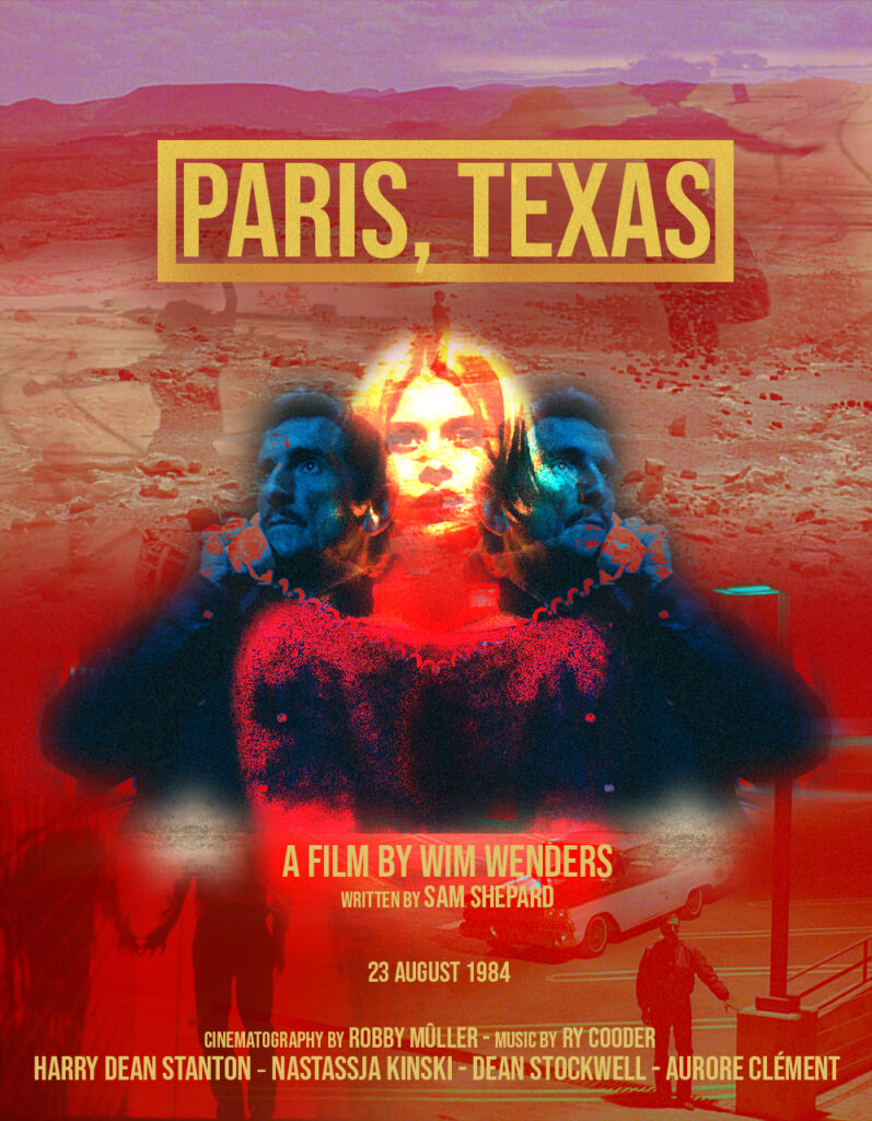 This is a movie poster I created as part of a school project, inspired by the 1984 film Paris, Texas. I designed it using Adobe Photoshop, aiming to capture the unique atmosphere and emotional depth of the film. Through the poster, I wanted to evoke the film’s themes of isolation, longing, and redemption, reflecting the barren landscapes and intimate character portrayals that define Paris, Texas.
